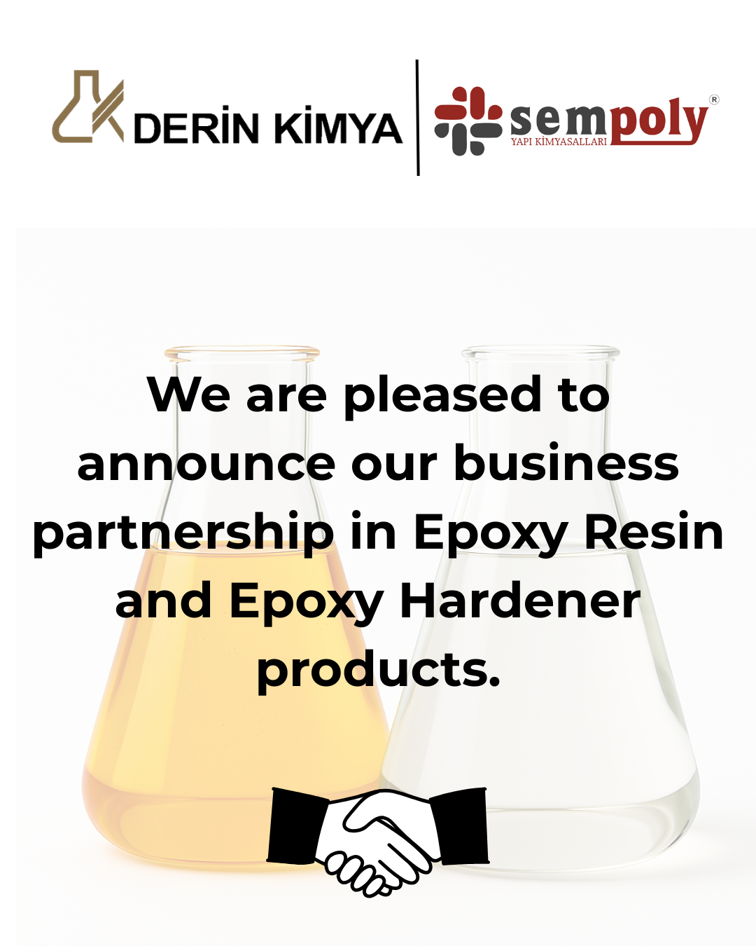 We are happy to share with you that we have signed a cooperation agreement with Sempoly Yapı Kimyasalları ve Zemin Tek San Tic Ltd Şti, one of the leading companies in the industry in the field of epoxy, polyurethane, and polyurea systems, for the epoxy resin and epoxy hardener product groups.